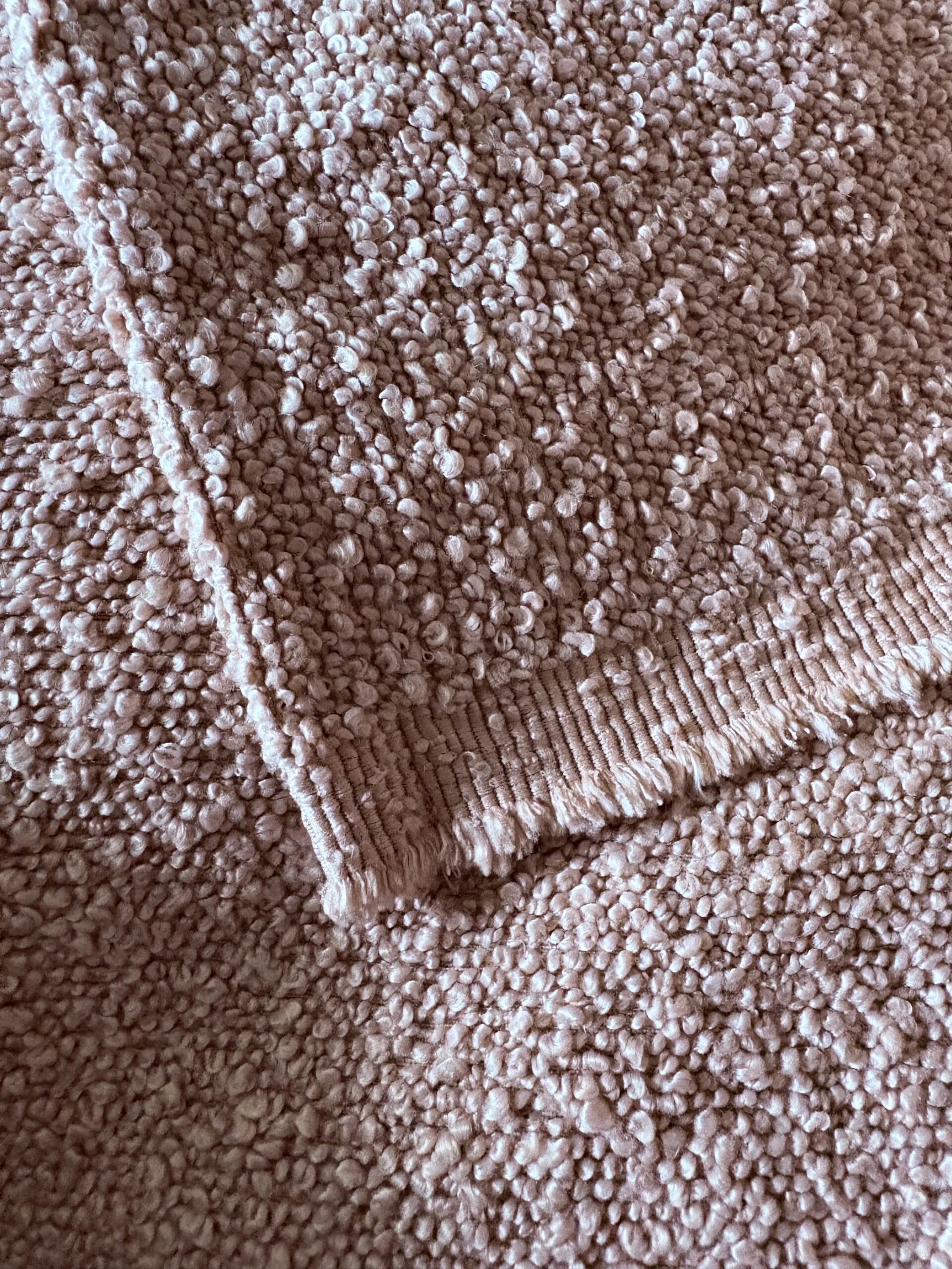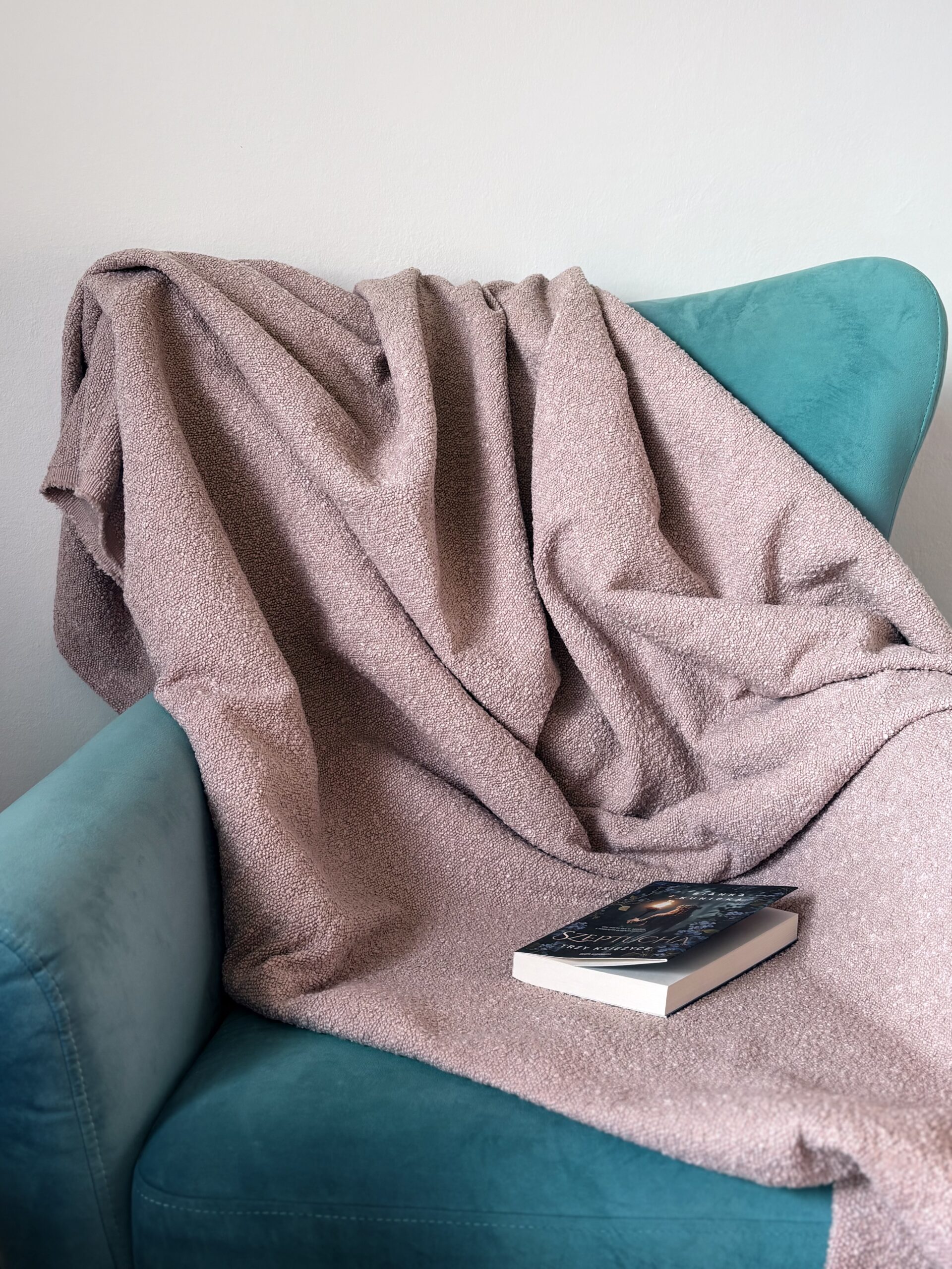 To nie tylko dekoracyjny dodatek, ale również praktyczny element wyposażenia – idealny do przykrycia łóżka, kanapy lub fotela. Narzuta bouclé w kolorze zgaszonego różu świetnie wkomponuje się w każdy wnętrzarski styl.