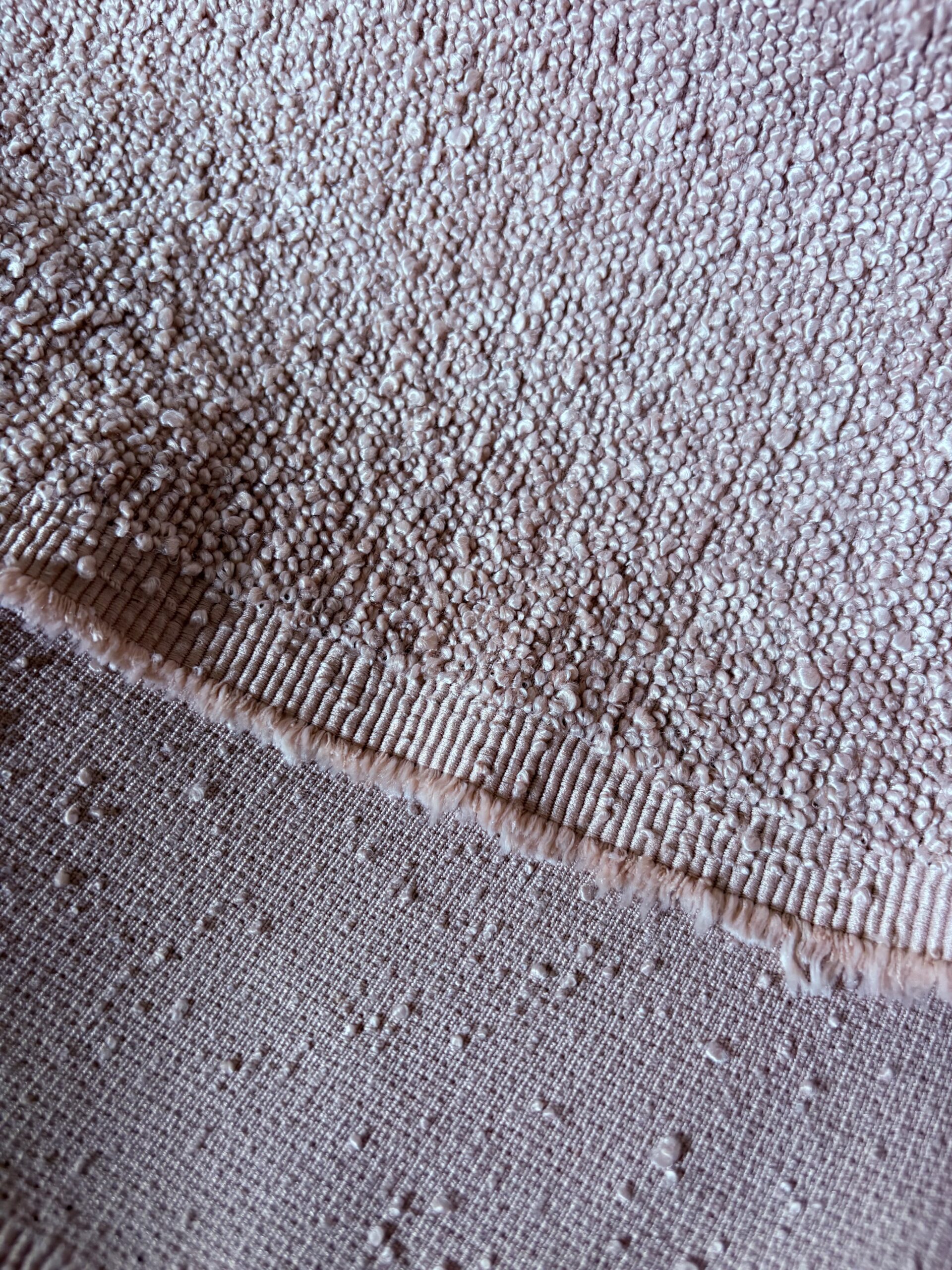 Odmień swoje wnętrze dzięki wyjątkowej narzucie z tkaniny bouclé w kolorze zgaszonego różu. Ten subtelny odcień dodaje ciepła i romantycznego uroku wnętrzu, zatem sprawdzi się świetnie zarówno w sypialni, jak i w salonie, tworząc przytulną atmosferę sprzyjającą relaksowi. Narzuta została uszyta z tkaniny bouclé, która zachwyca strukturą i eleganckim wyglądem.