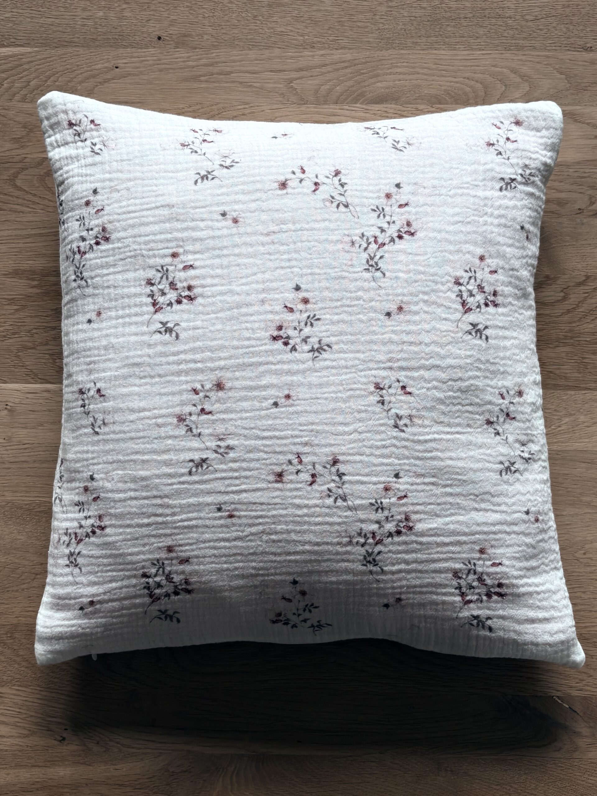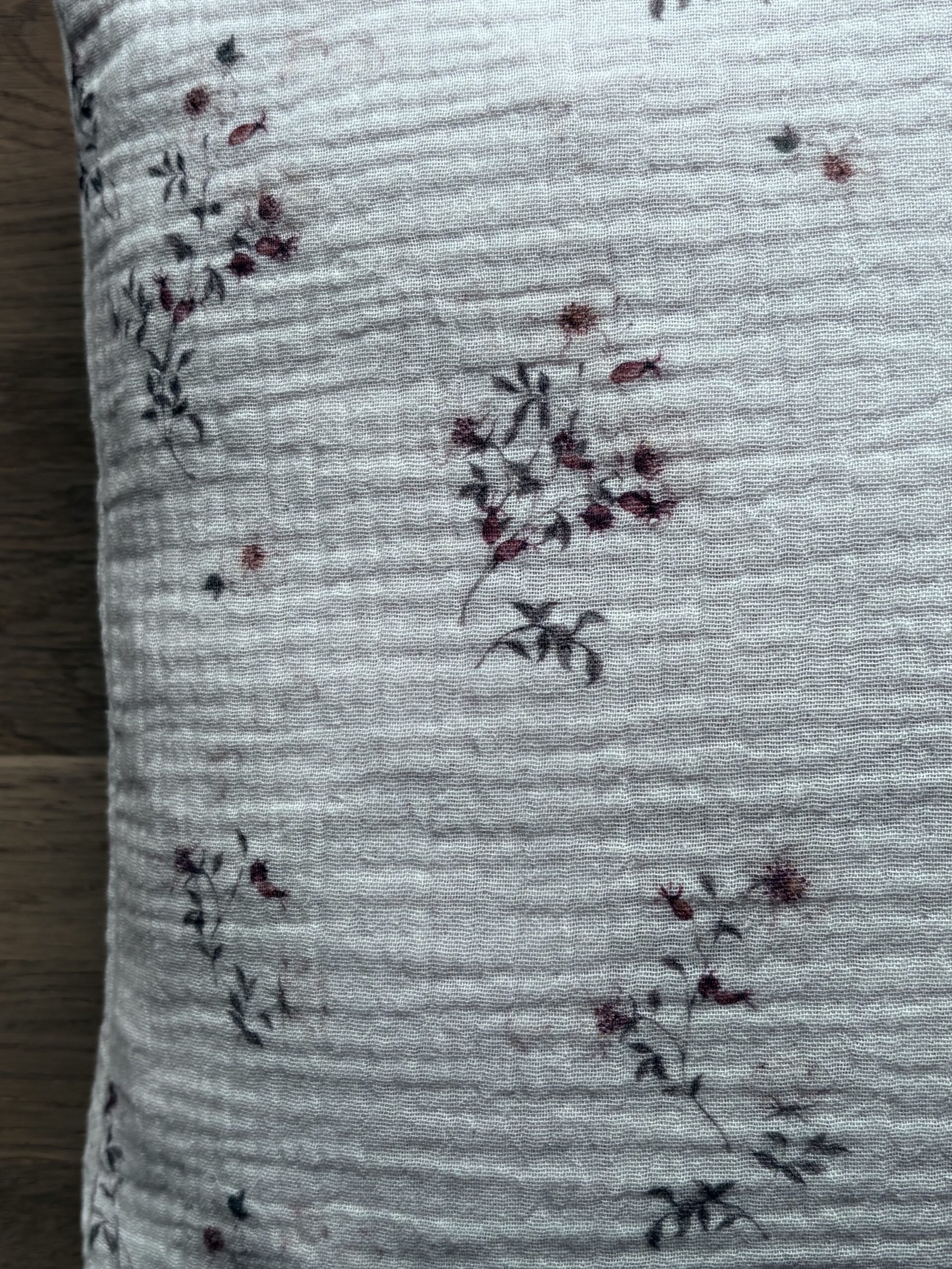 poszewka muślinowa, delikatne kwiatki na kremowym tle, zapinana na zamekPoszewka muślinowa – rustykalna