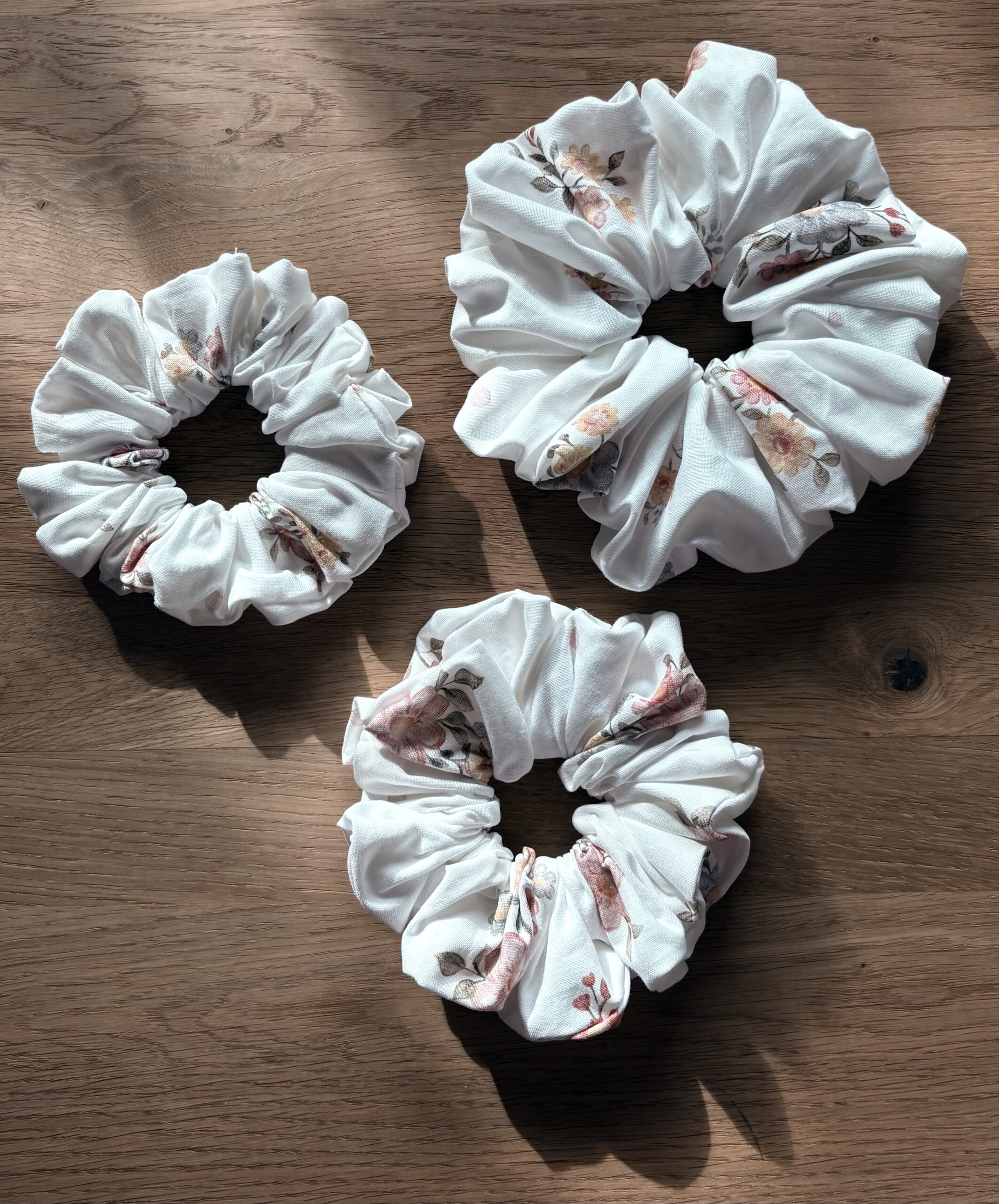 Scrunchie bawełniana – blossom – delikatna gumka do włosów z naturalnej tkaniny