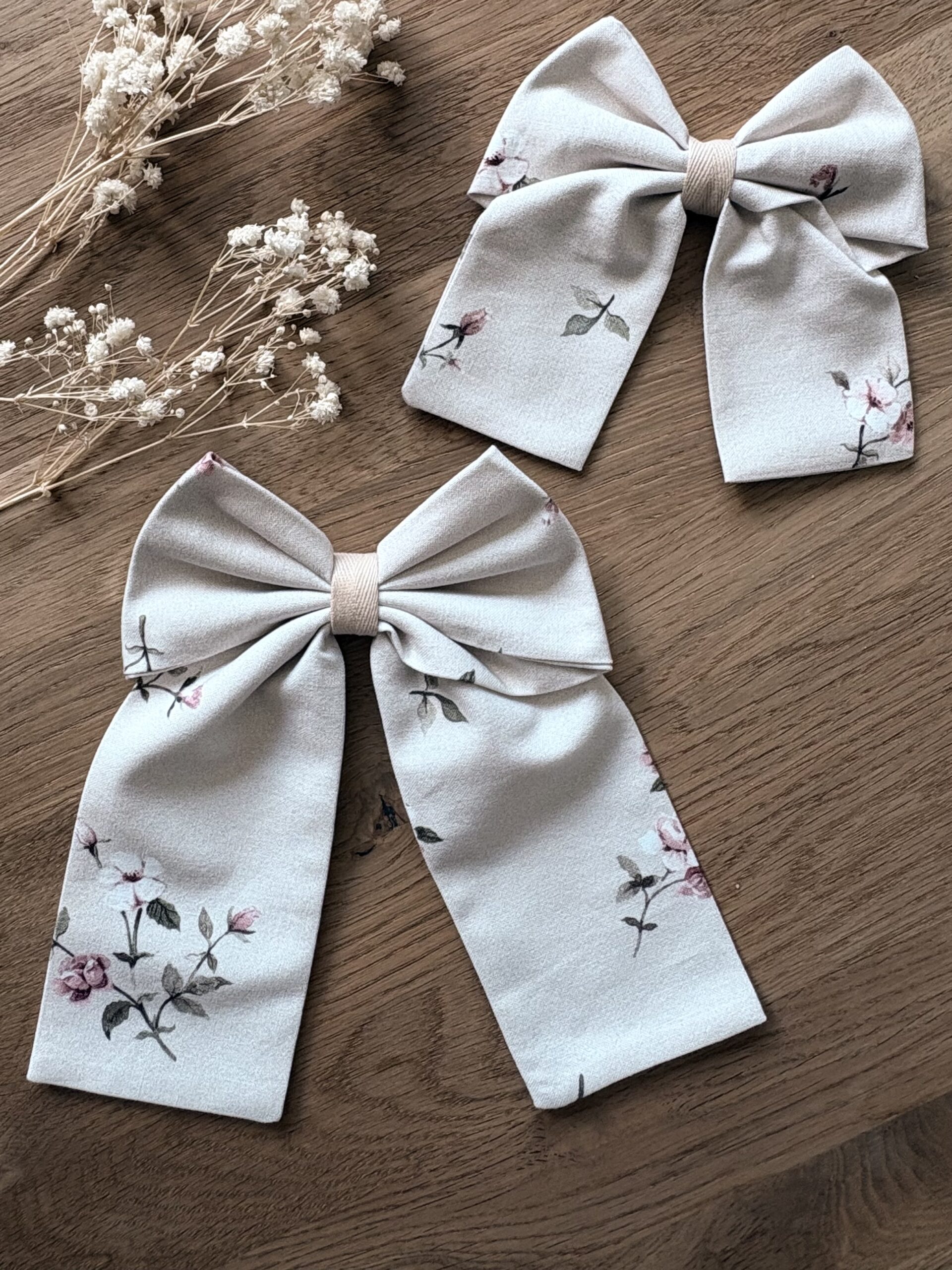 Spinka została zaprojektowana z dbałością o każdy detal. Miękka, bawełniana kokarda prezentuje się bardzo efektownie, a jednocześnie nie przytłacza fryzury. Delikatny kwiatowy wzór, na beżowym tle uzupełni wiele stylizacji. Dzięki metalowej klamrze, produkt pewnie trzyma się we włosach, nie wyślizguje się i nie powoduje dyskomfortu nawet po wielu godzinach noszenia. To praktyczne akcesorium do włosów, które łączy wygodę z estetyką.