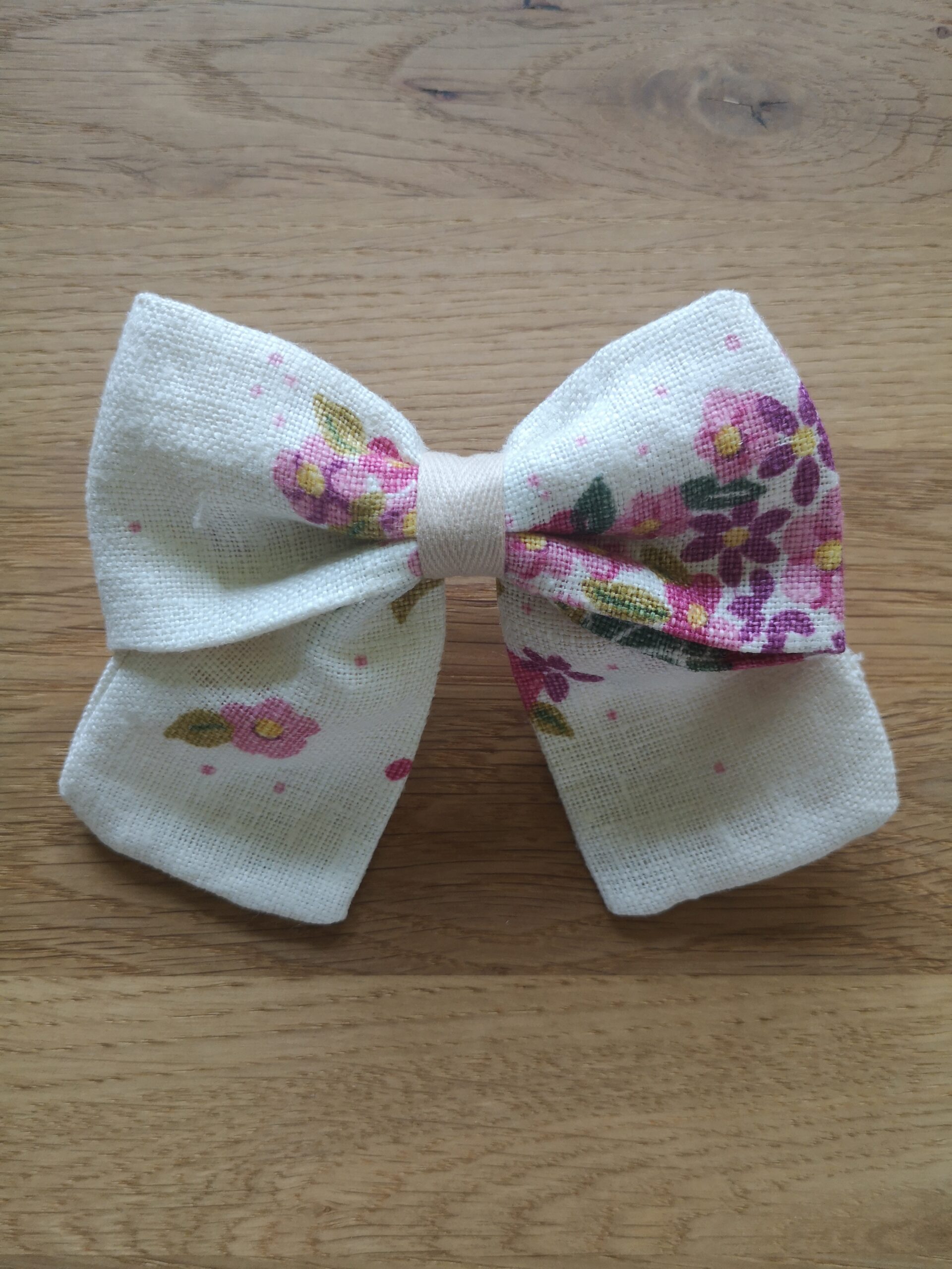 Spinka do włosów z kokardą (100% len) i klamrą (metal)
